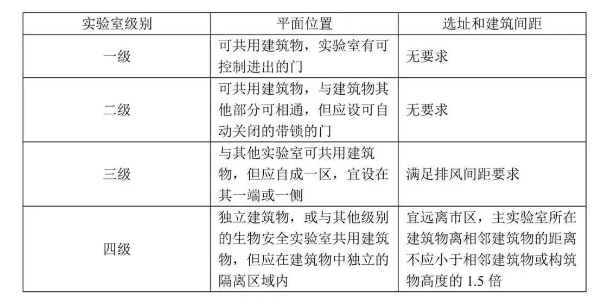 在設(shè)計和裝修層面,各級生物安全實(shí)驗室需要滿足以下位置要求: